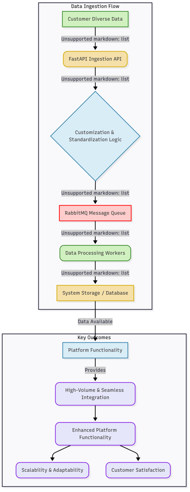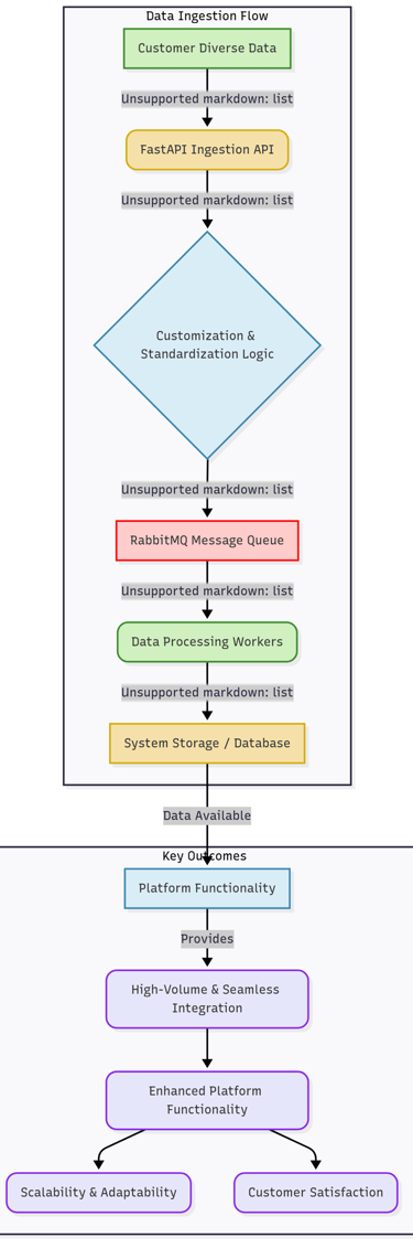 A key functionality built allows customers to directly ingest their diverse data into the system. This involved developing advanced customization and parsing mechanisms to standardize incoming data, significantly enhancing the platform's overall functionality, scalability, and adaptability to varied client requirements while boosting customer satisfaction.