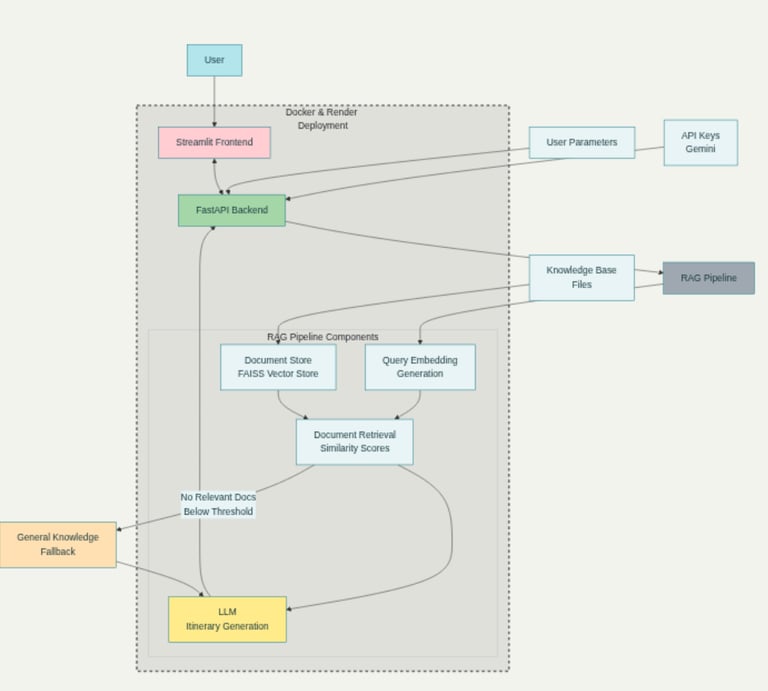 Architected a robust system using a FastAPI backend and a Streamlit frontend, containerized with Docker. The core of the application features a Retrieval-Augmented Generation (RAG) pipeline that leverages a FAISS vector store to ground LLM responses in custom knowledge documents, with an intelligent fallback to general knowledge.